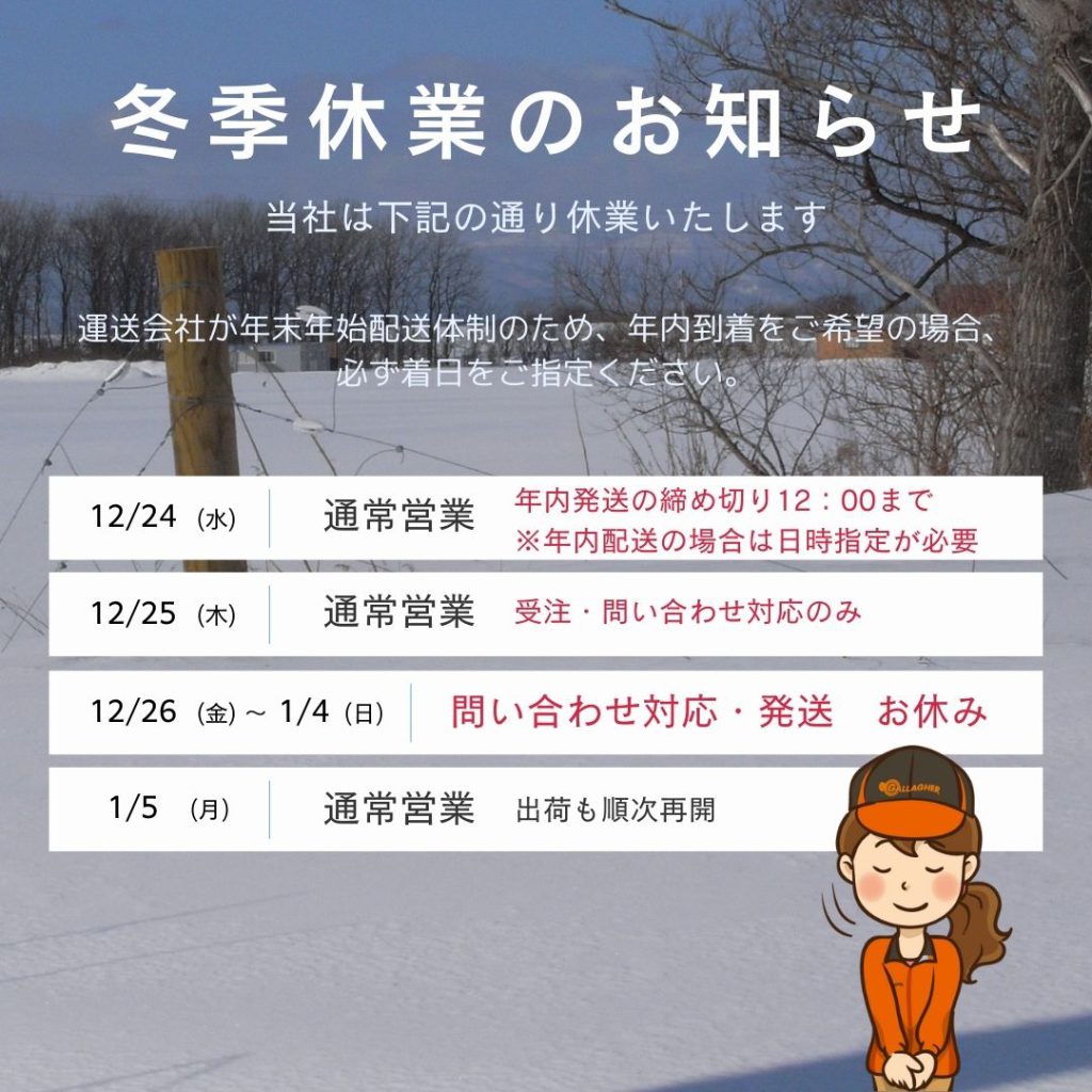 冬季休業のお知らせ